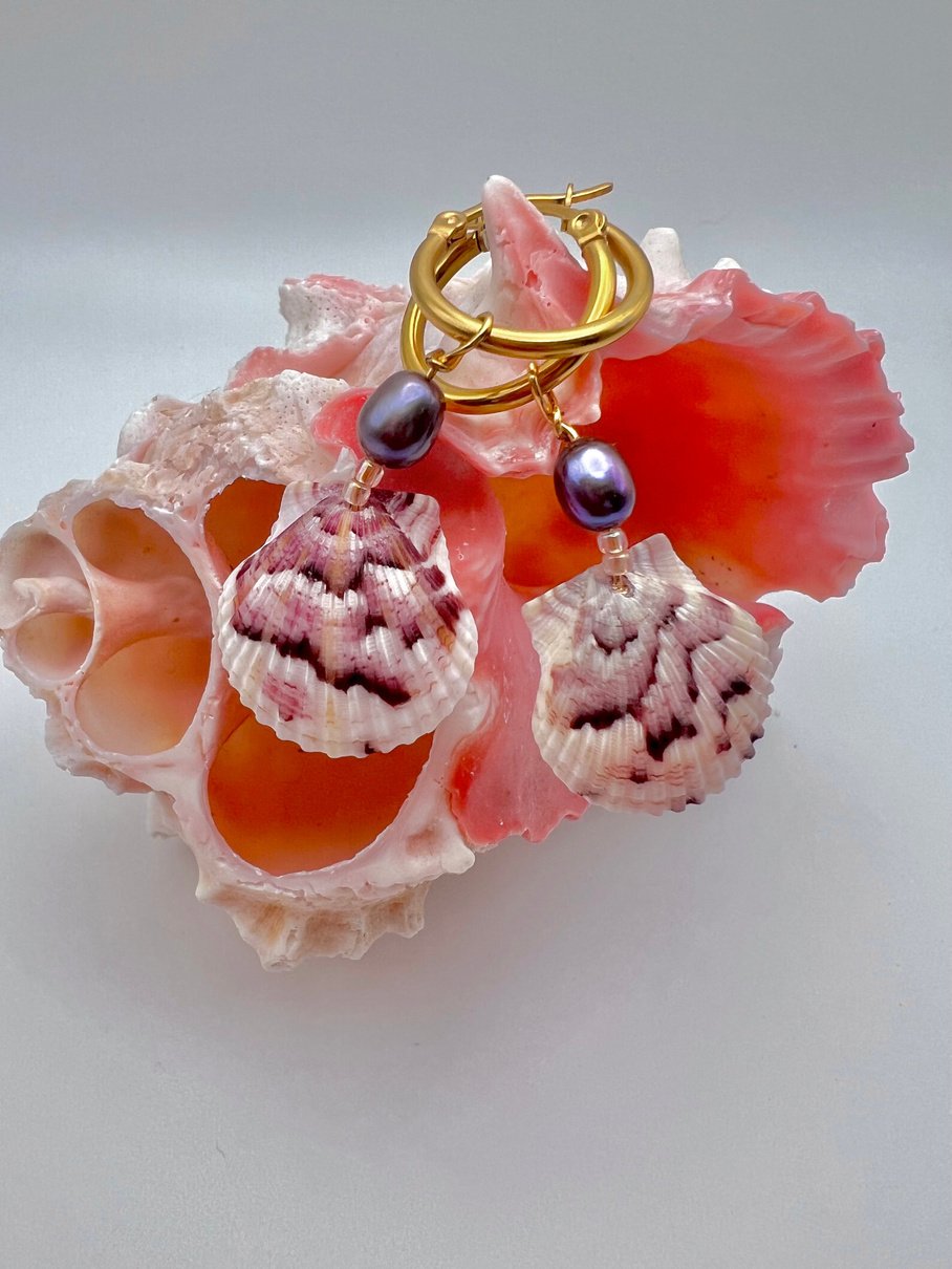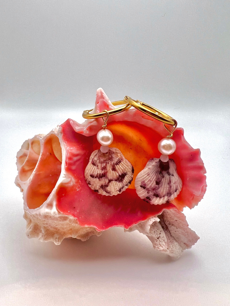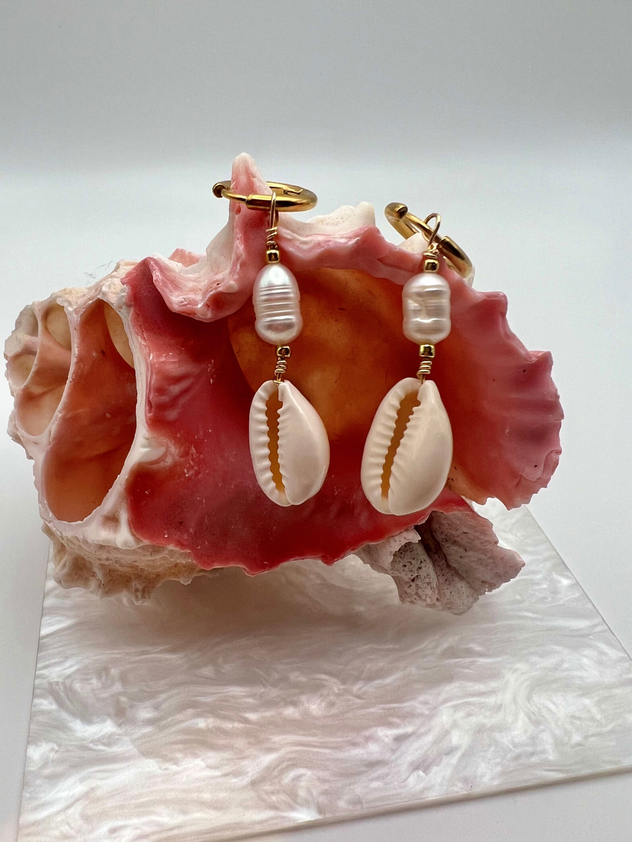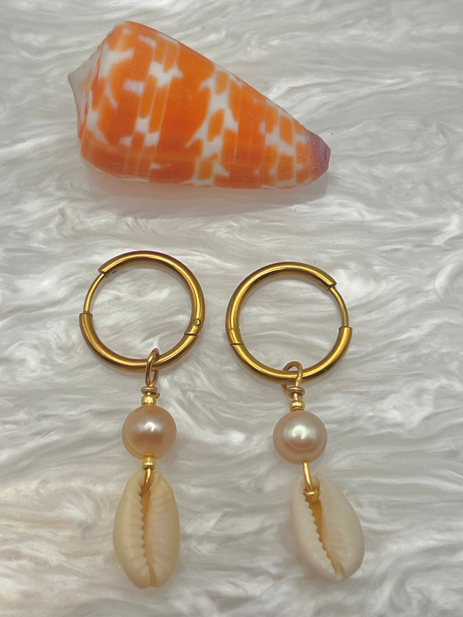 SCALLOP SHELL EARRINGS ON GOLD HOOKS
